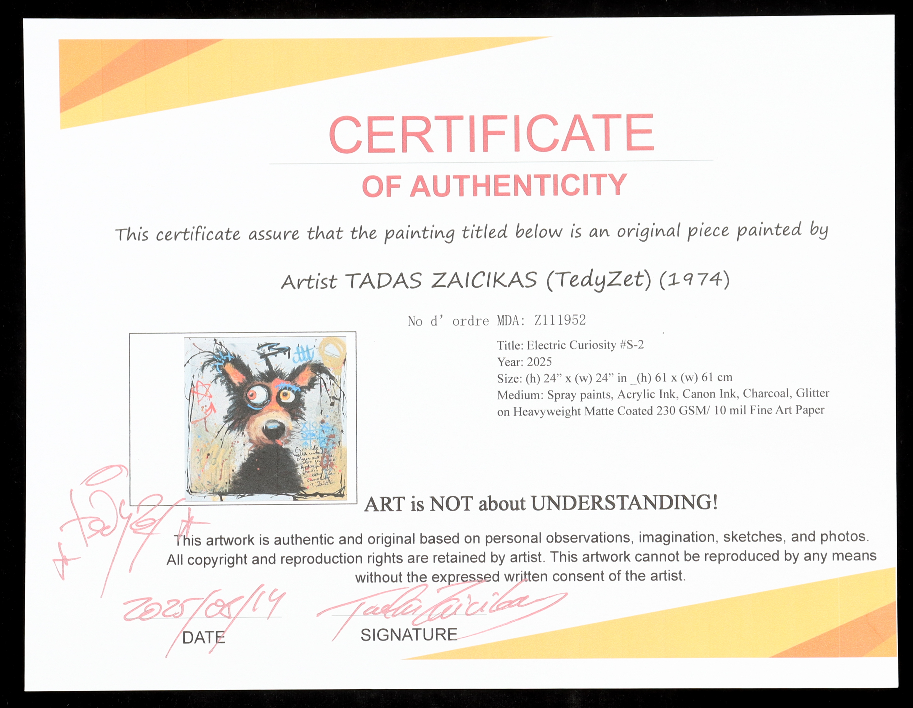 "Electric Curiosity #S-2" 2025 24x24 Original Painting on Fine Art Paper by Tadas Zaicikas | TedyZet (Zaicikas)