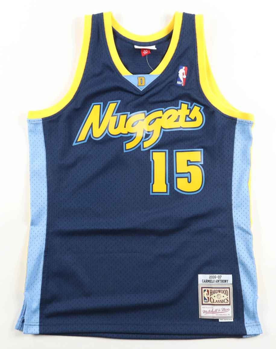 Mitchell & Ness authentic jersey with everything pressed on, size M. Hand-signed by Carmelo Anthony (Denver Nuggets, HOF).