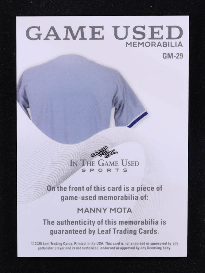Manny Mota 2025 Leaf ITG Used Sports Game Used Memorabilia Blue Foil JSY #GM29 #30/65