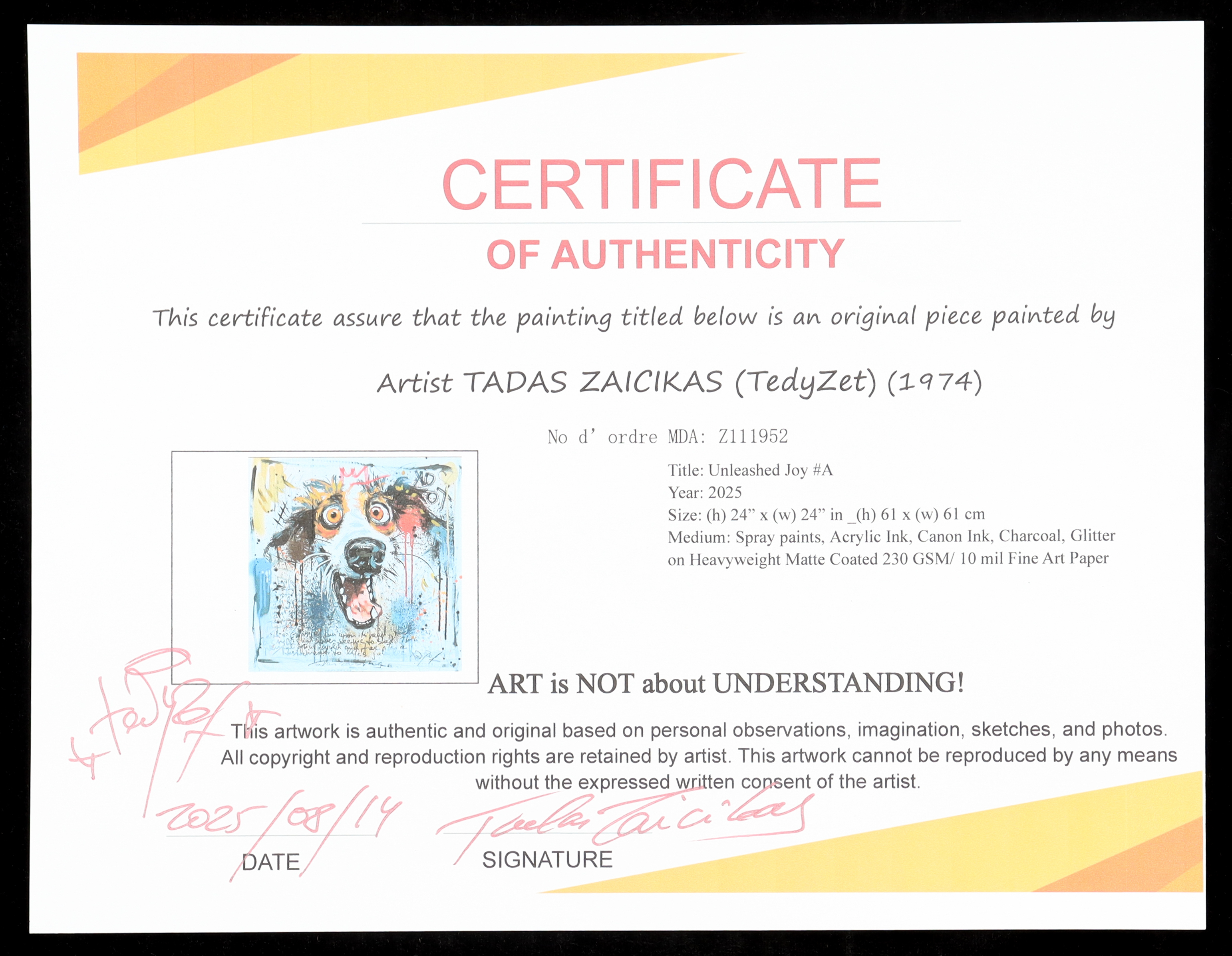 "Unleashed Joy #A" 2025 24x24 Original Painting on Fine Art Paper by Tadas Zaicikas | TedyZet (Zaicikas)