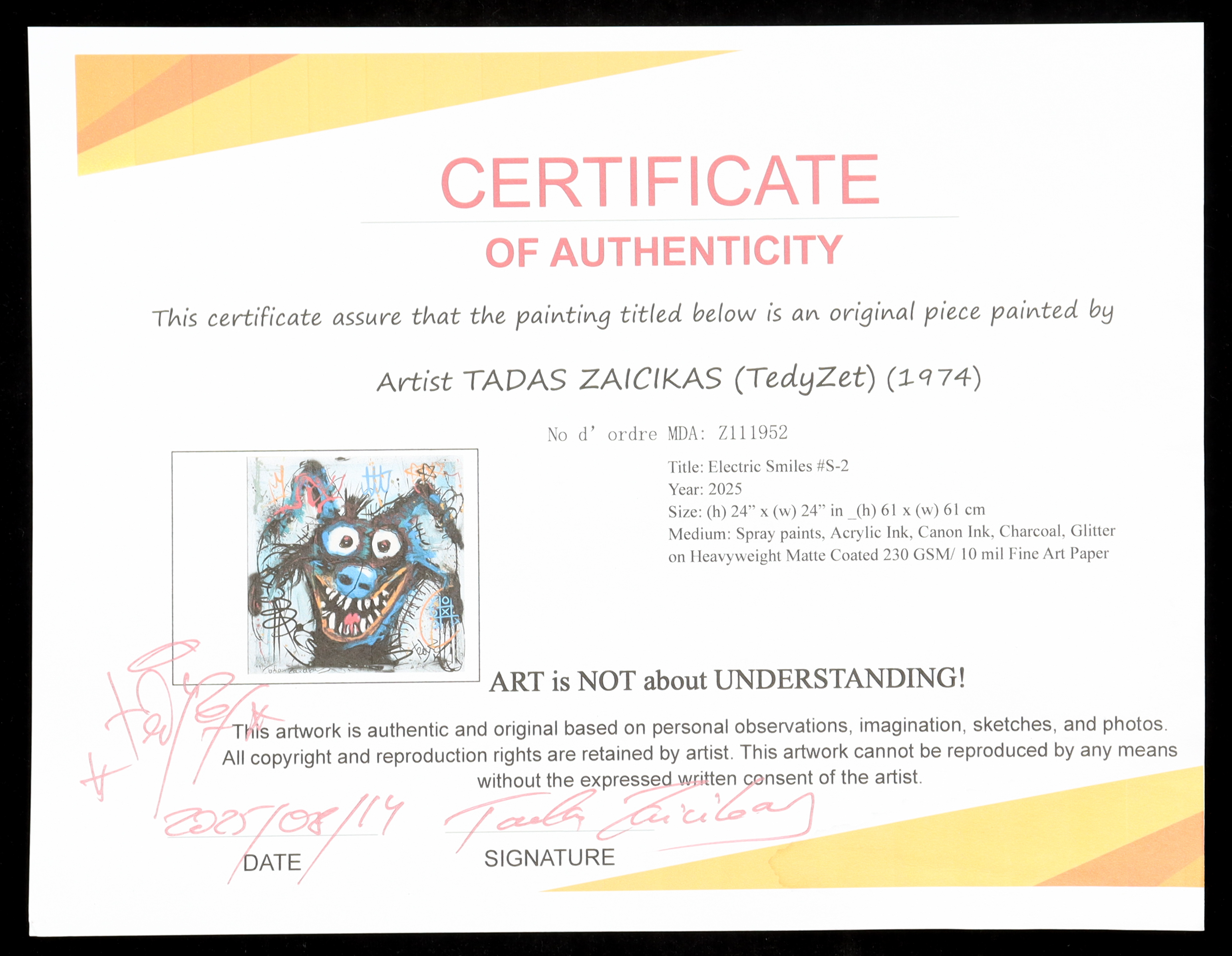 "Electric Smiles #S-2" 2025 24x24 Original Painting on Fine Art Paper by Tadas Zaicikas | TedyZet (Zaicikas)