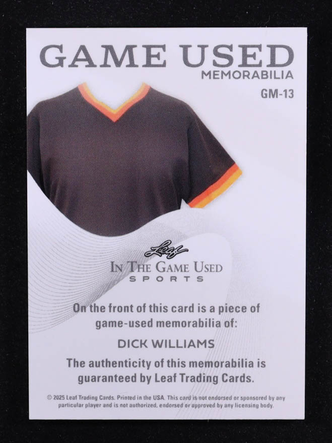 Dick Williams 2025 Leaf ITG Used Sports Game Used Memorabilia Silver Sparkle Foil JSY #GM13 #13/30