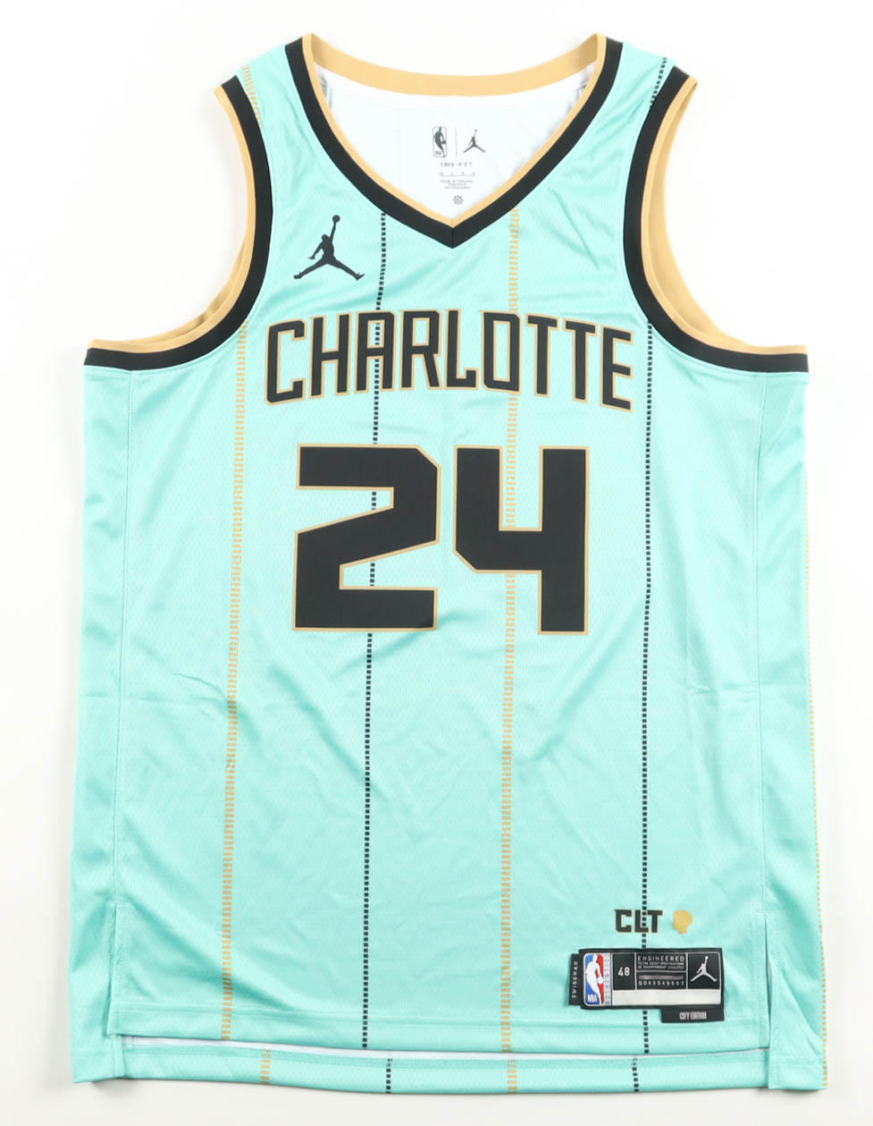 Jordan Authentic Jersey with everything pressed on, size 48. Hand-signed by Brandon Miller (Charlotte Hornets).