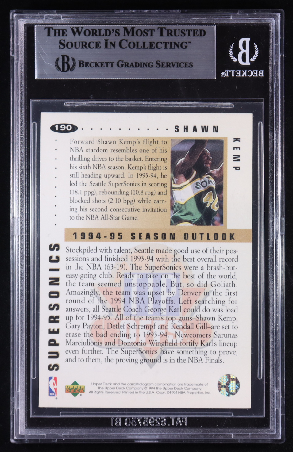 Shawn Kemp Signed 1994-95 Upper Deck Collector's Choice Tip Offs #190 (BGS)