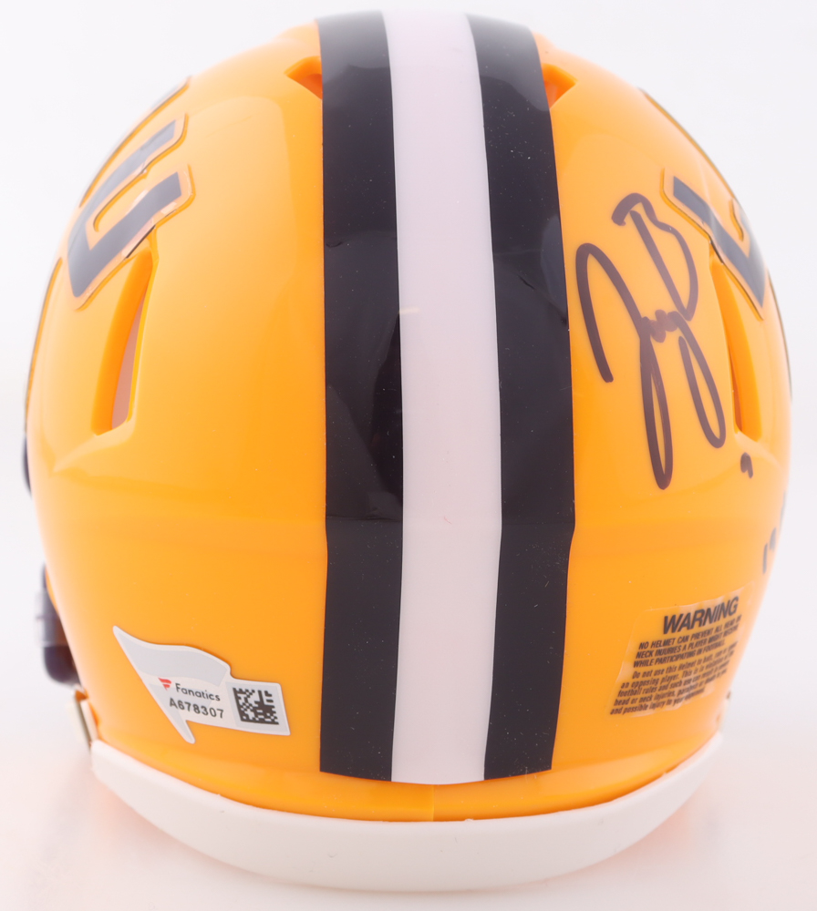 Riddell LSU Tigers Speed mini helmet has been hand-signed and inscribed by Joe Burrow.