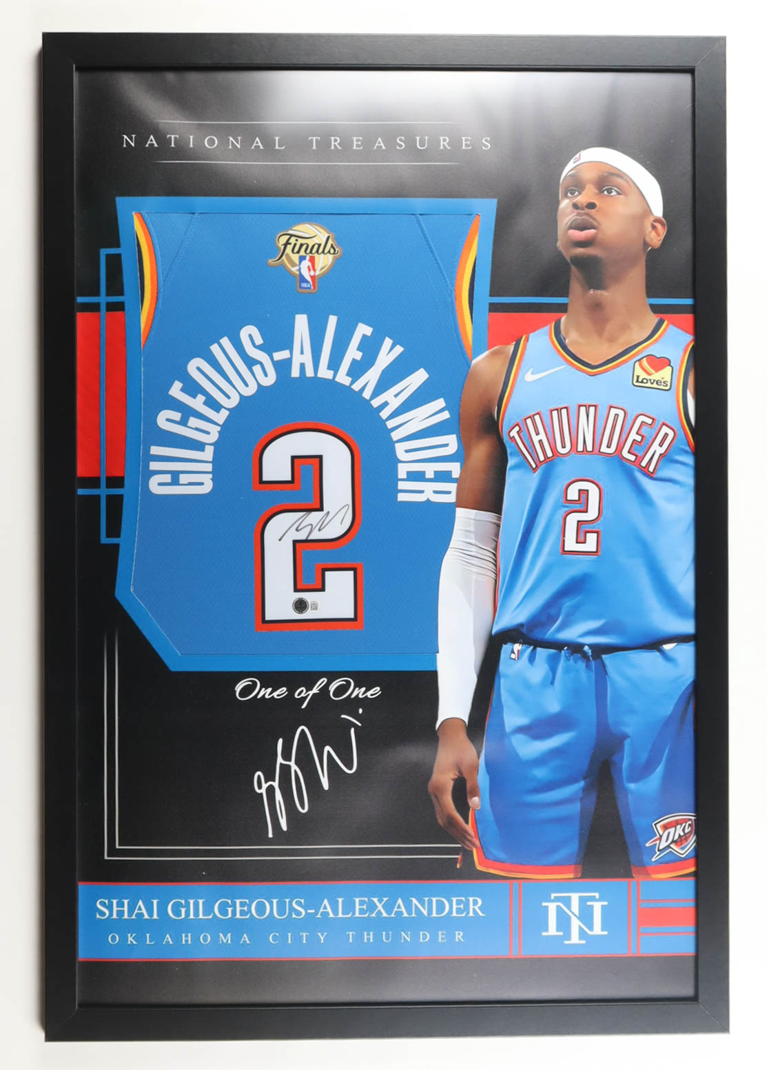 Custom frame display measures approximately 26" x 38" in size and features a jersey that has been hand-signed by Shai Gilgeous-Alexander (Oklahoma City Thunder). Please refer to photos regarding the condition of the item.