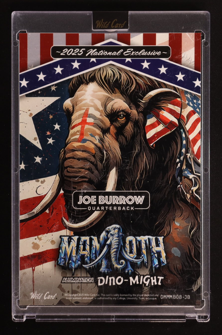 Joe Burrow 2025 Wild Card Alumination Dino-Might National Exclusive Mammoth Red White and Blue Mojo #DMMMB08-JB #1/1