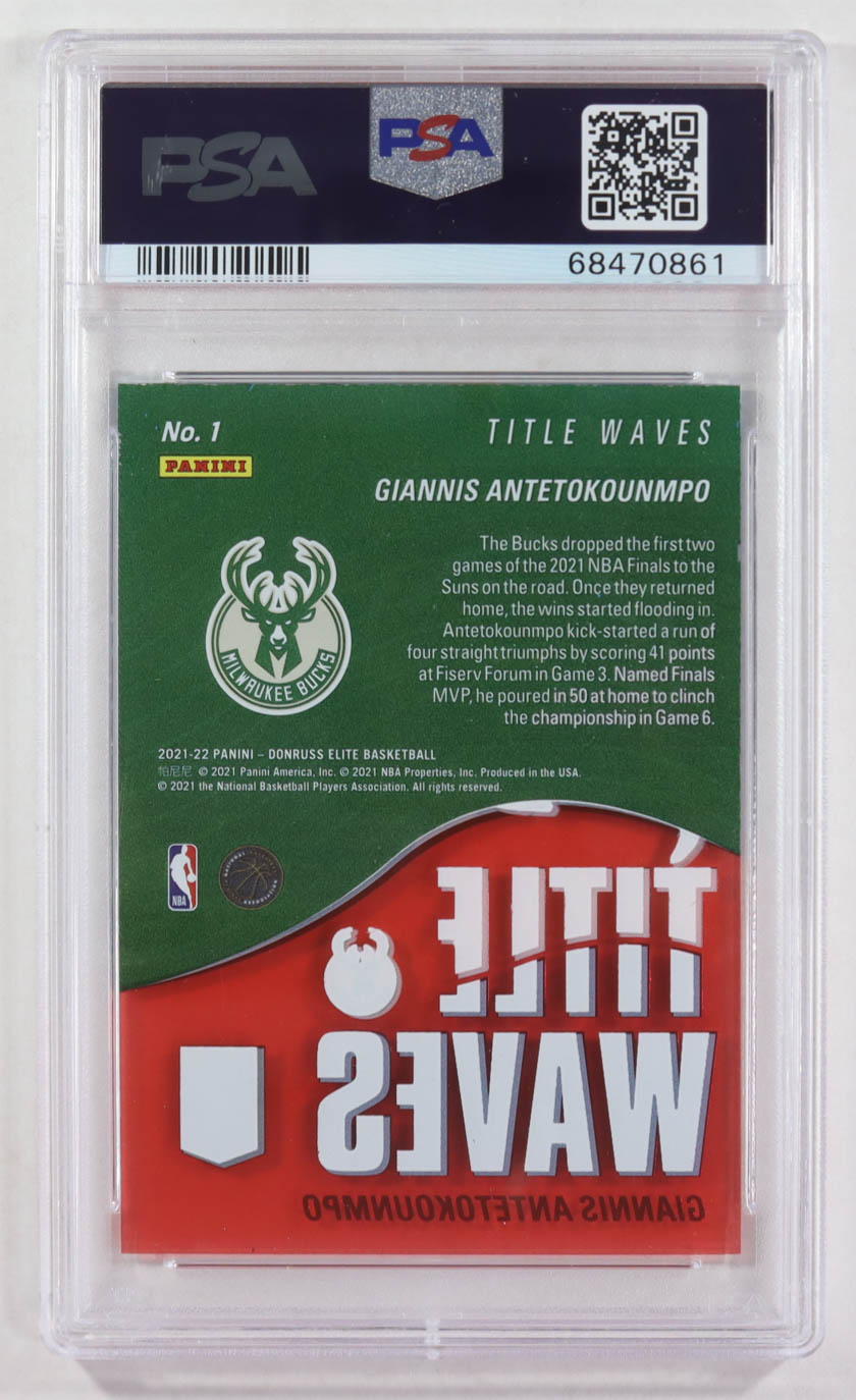 Giannis Antetokounmpo 2021-22 Elite Title Waves Asia Red #1 (PSA 9)