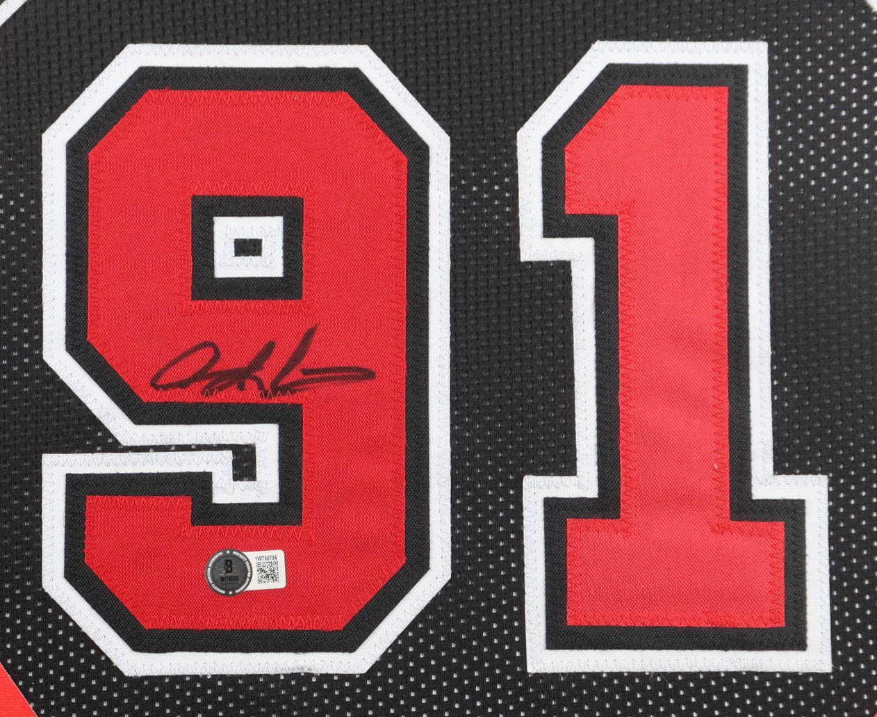 Custom frame display measures approximately 26" x 38" in size and features a jersey that has been hand-signed by Dennis Rodman (Chicago Bulls, HOF). Please refer to photos regarding the condition of the item.