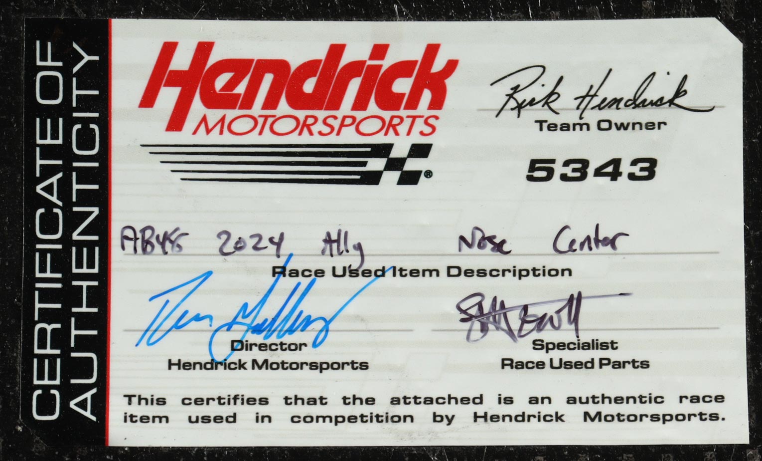 Authentication: Hendrick Motorsports COA