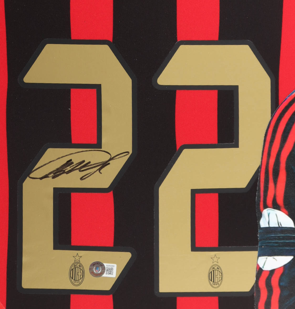 Custom frame display measures approximately 26" x 38" in size and features a jersey that has been hand-signed by Ricardo Kaka (AC Milan). Please refer to photos regarding the condition of the item.