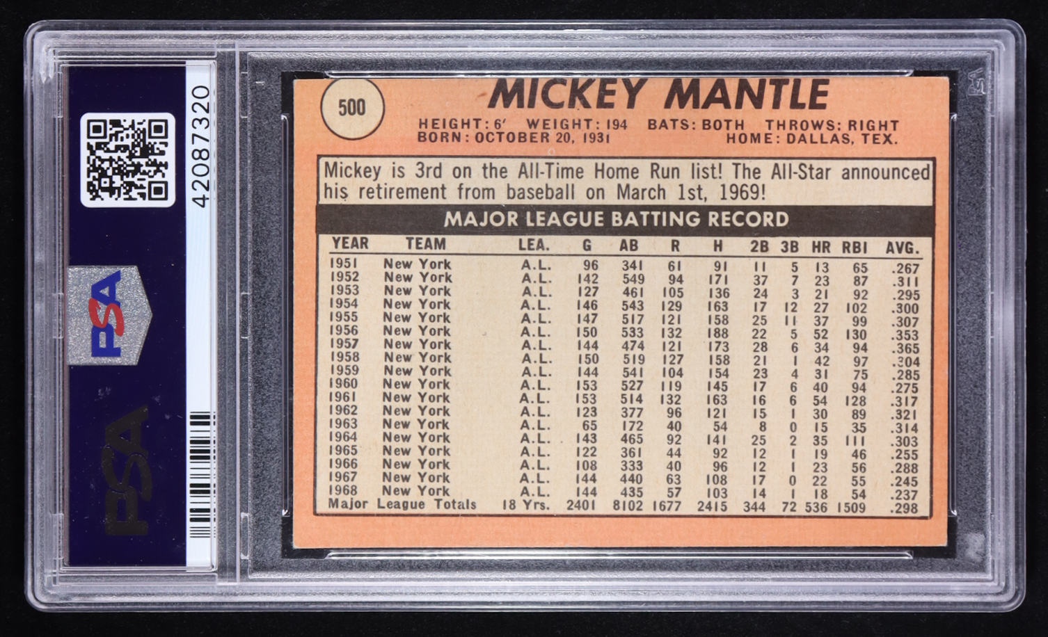 Mickey Mantle 1969 Topps #500A (PSA 6) (MC)