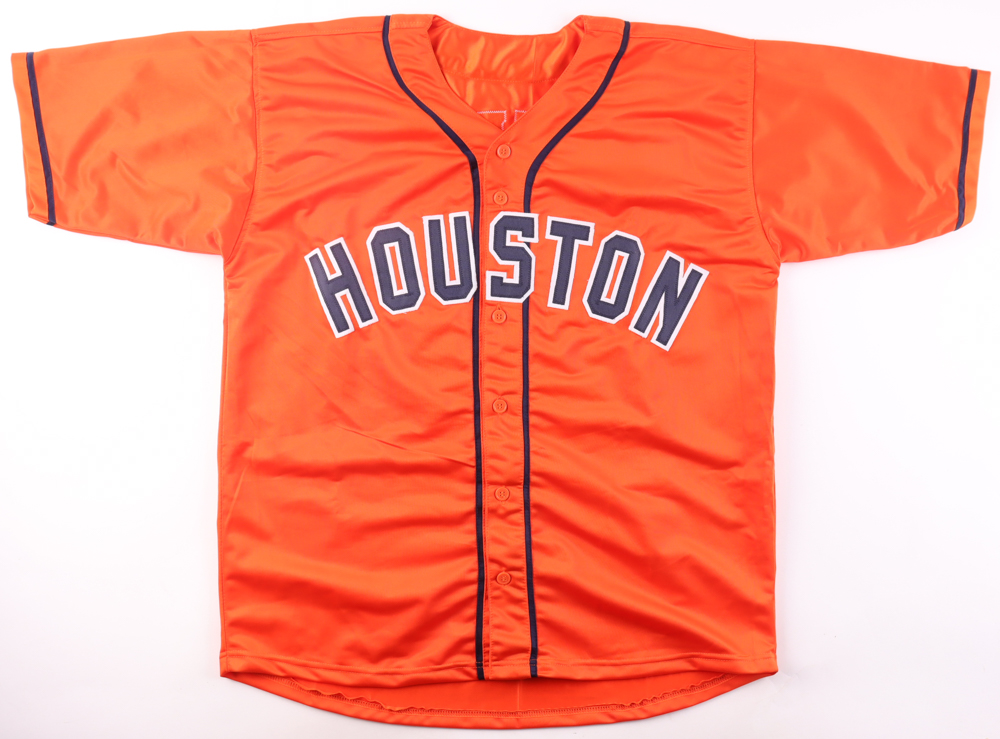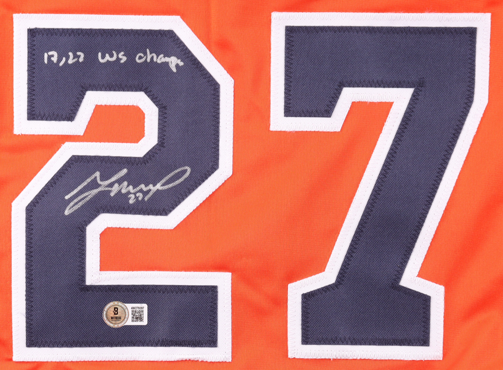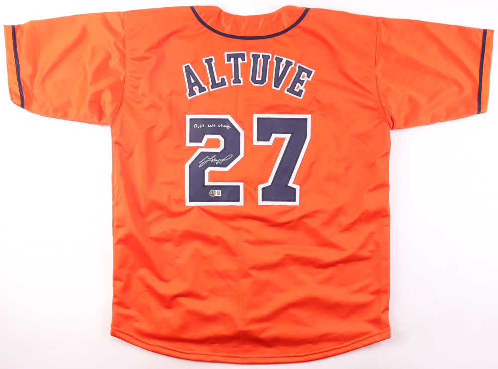 Custom jersey with everything sewn on, size XL. Hand-signed and inscribed by Jose Altuve.