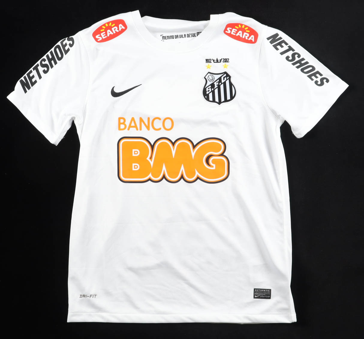 Nike jersey. Everything is pressed on, size M. Hand-signed by Neymar Jr. (Santos FC).