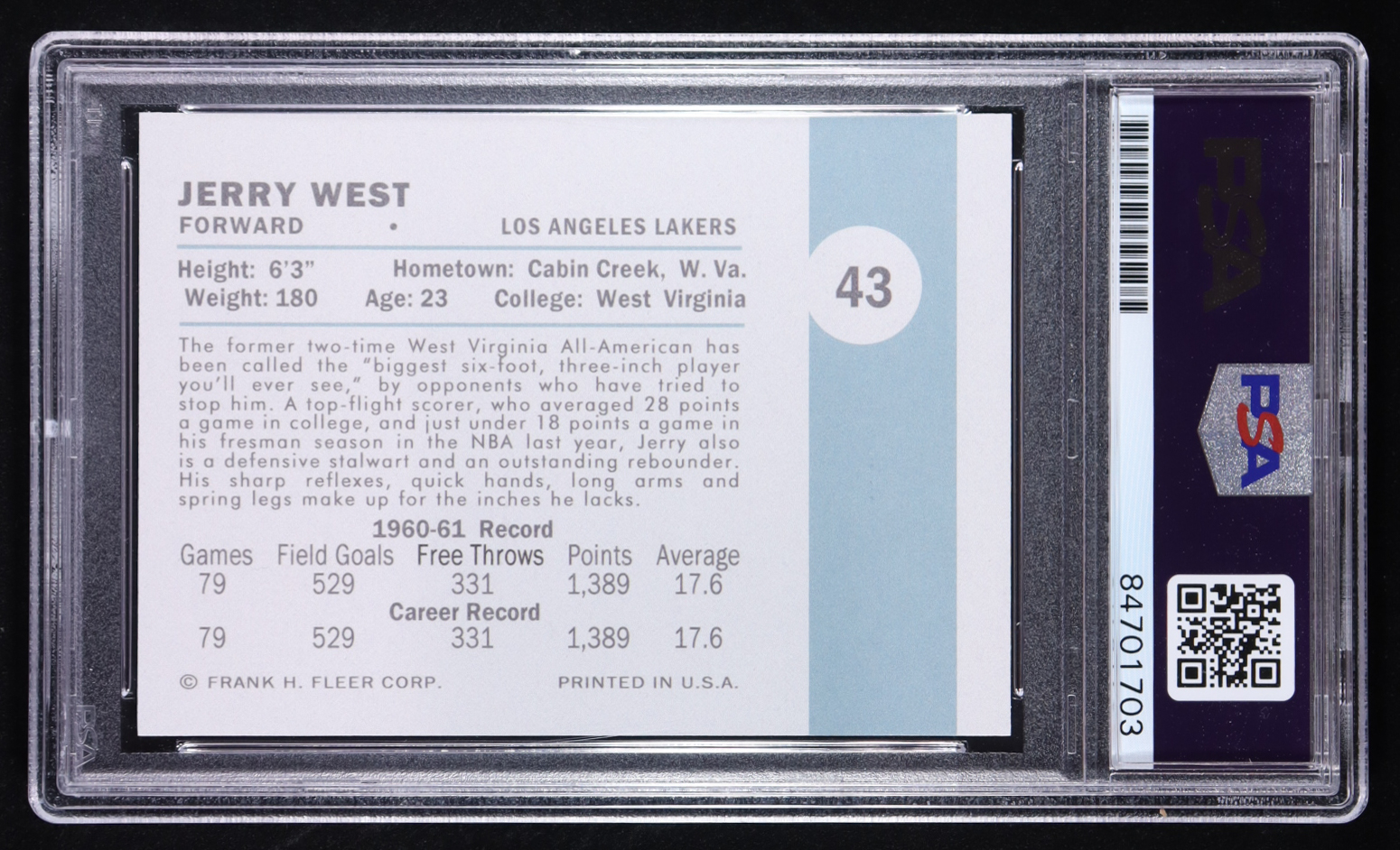 Jerry West Signed 1961-62 Fleer #43 Reprint Card (PSA)
