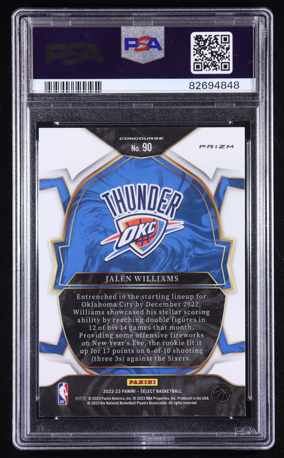 Jalen Williams 2022-23 Panini Select Concourse Blue Prizm #90 RC (PSA 9)