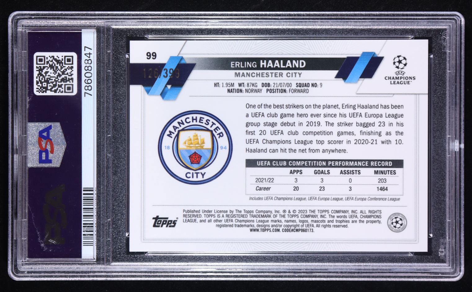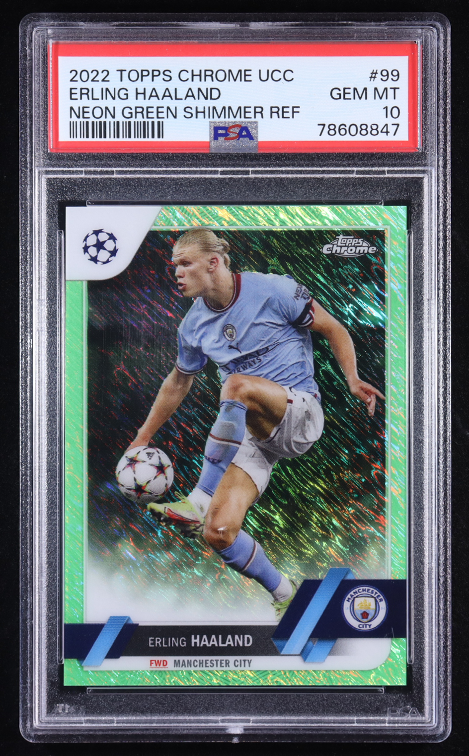 Erling Haaland 2022 Topps Chrome UCC Neon Green Shimmer Refractor #99 #126/399 (PSA 10)