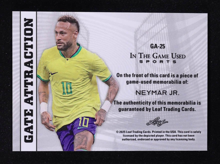 Neymar Junior 2025 Leaf ITG Used Sports Gate Attraction Dual Relic Silver Sparkle Foil #GA25 #12/25