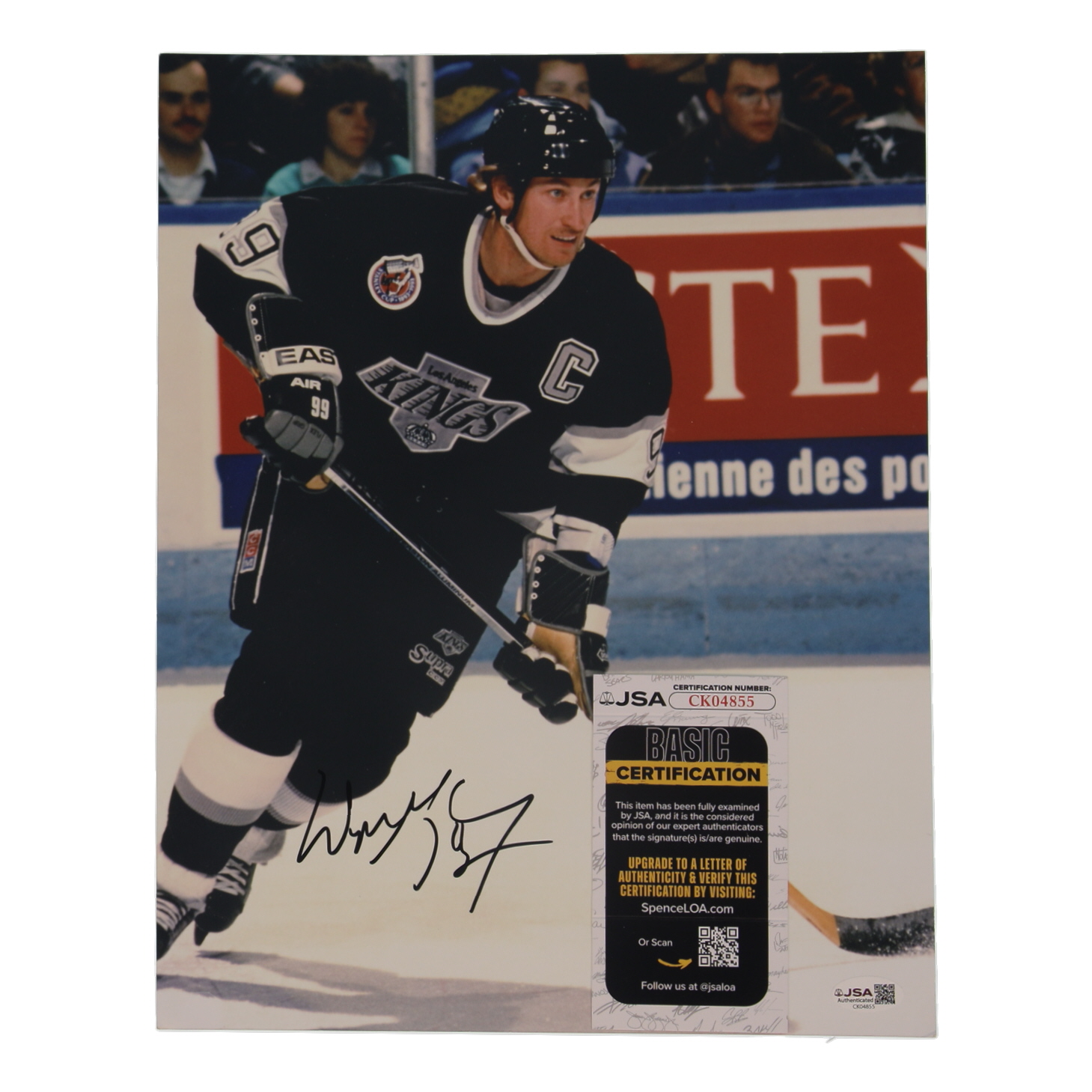 Photo measures 11” x 14” in size and has been hand-signed by Wayne Gretzky (Los Angeles Kings, HOF).