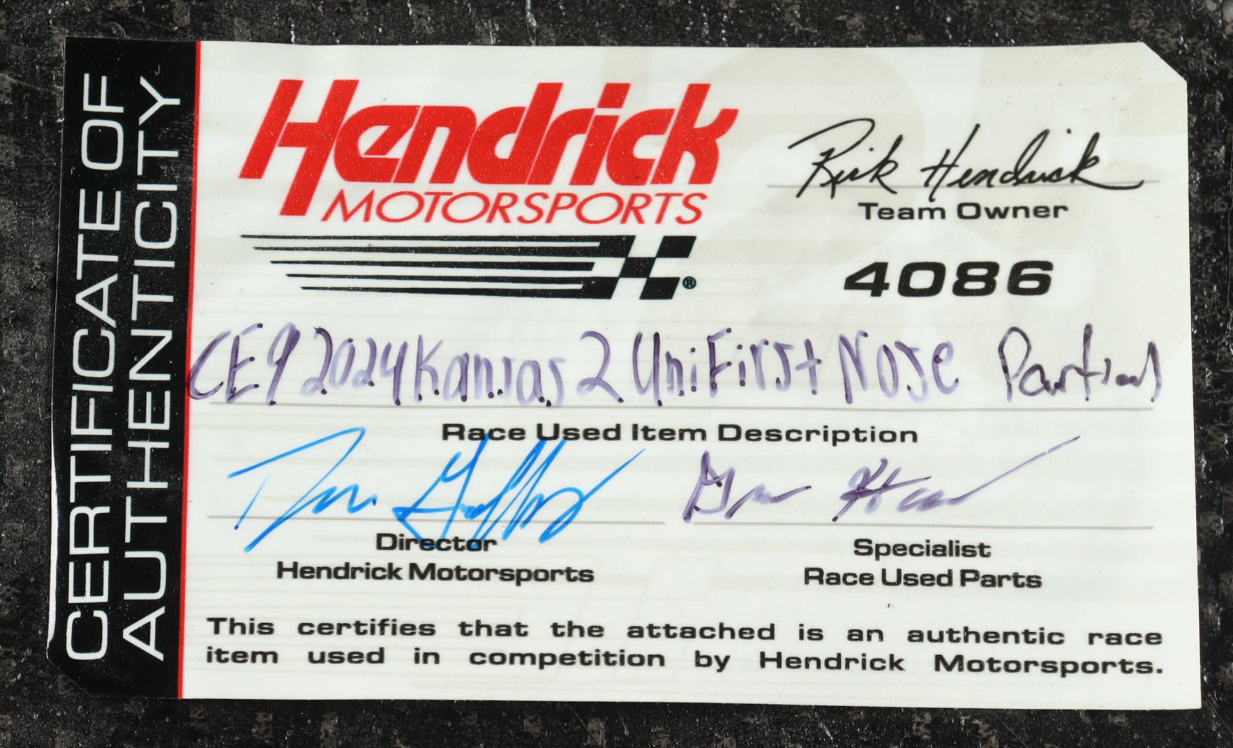 Authentication: Hendrick Motorsports COA