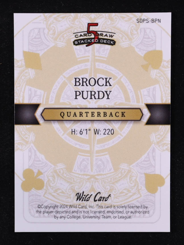 Brock Purdy 2024 Wild Card 5 Card Draw Stacked Deck Queen Of Spades Red Cross Hatch Foil #SDPS-BPN #1/2