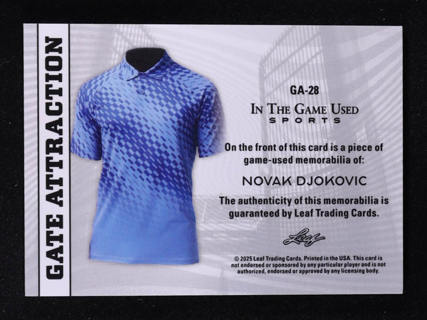 Novak Djokovic 2025 Leaf ITG Used Sports Gate Attraction Dual Relic Black Foil #GA28 #1/3