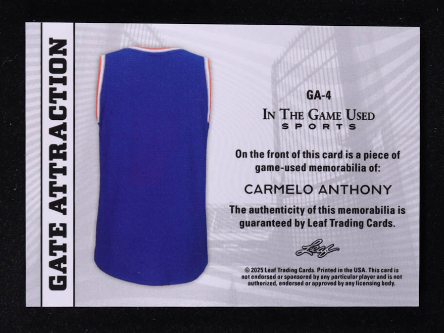 Carmelo Anthony 2025 Leaf ITG Used Sports Gate Attraction Dual Relic Blue Foil #GA4 #37/55