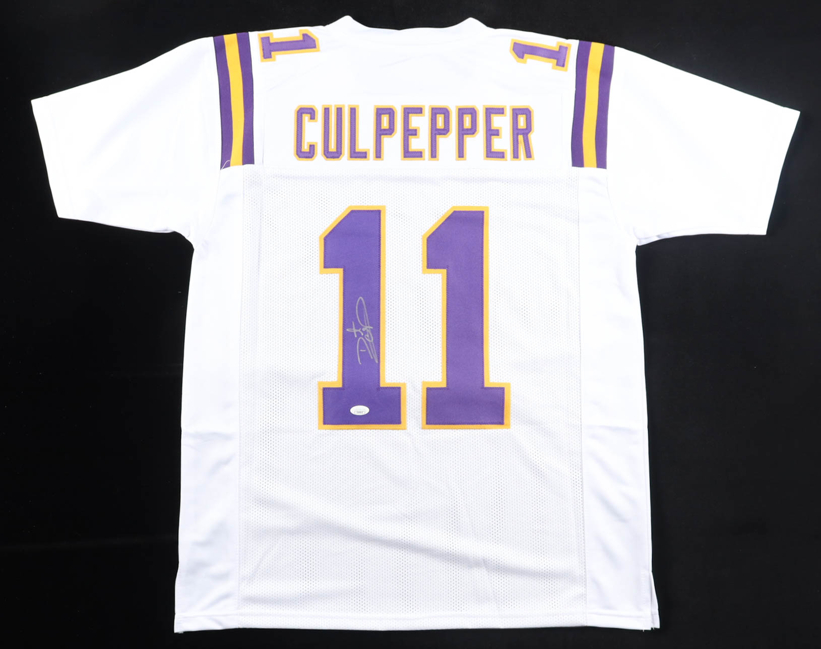 Custom jersey with everything sewn on, size XL. Hand-signed by Daunte Culpepper.