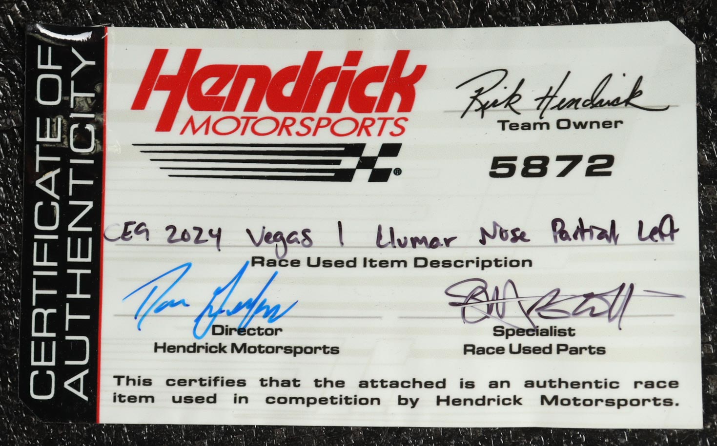 Authentication: Hendrick Motorsports COA