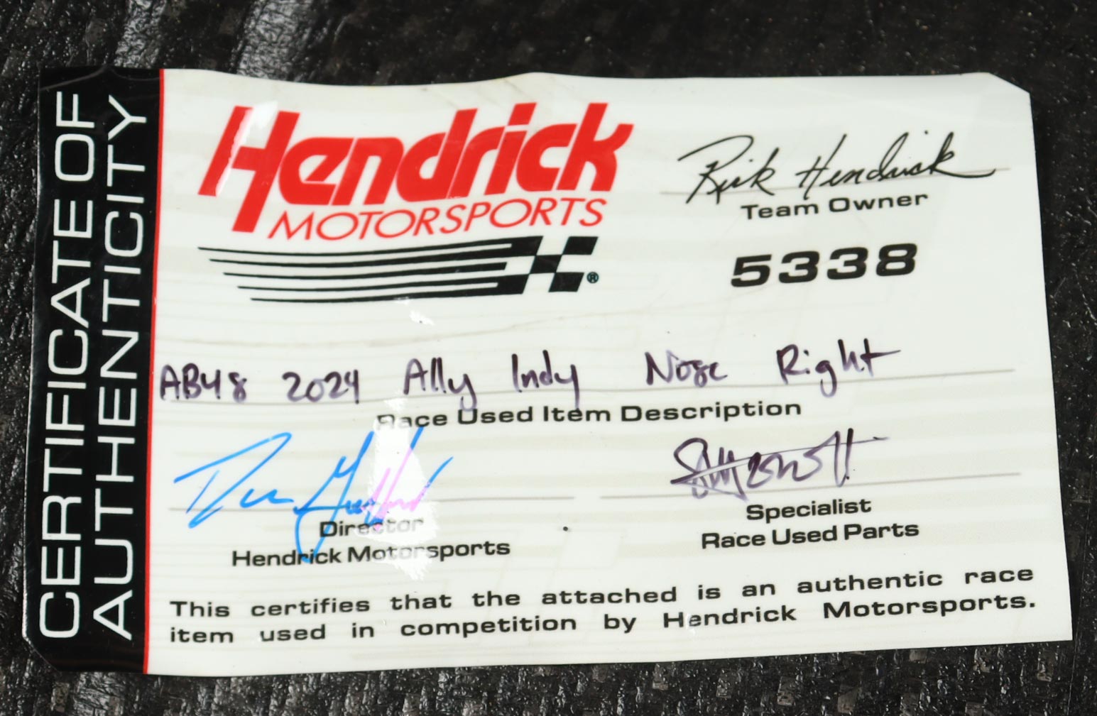 Authentication: Hendrick Motorsports COA