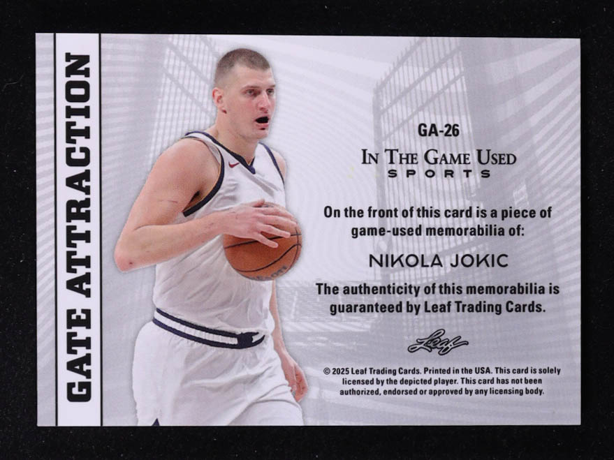 Nikola Jokic 2025 Leaf ITG Used Sports Gate Attraction Dual Relic Silver Sparkle Foil #GA26 #13/25