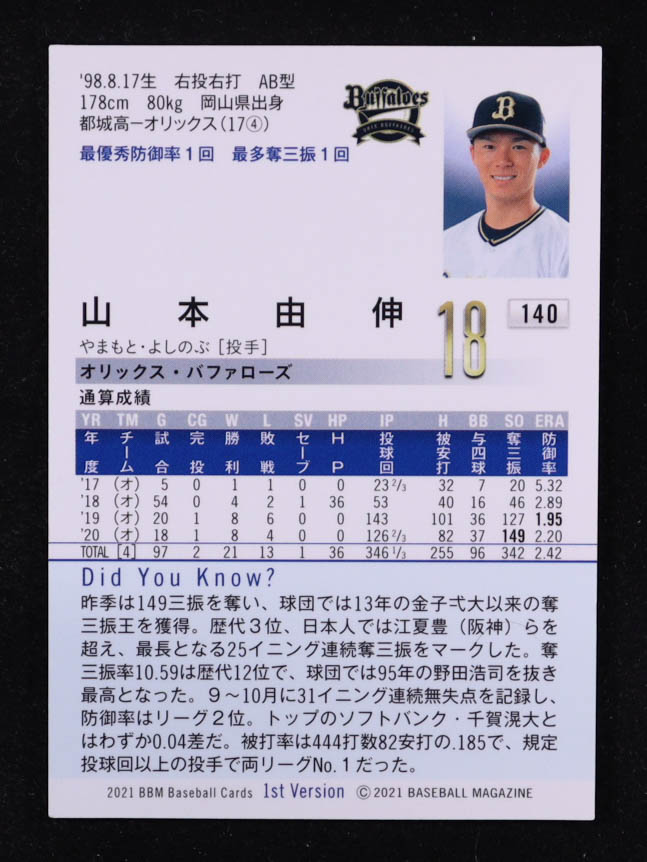 Yoshinobu Yamamoto 2021 BBM 1st Version #140 RC