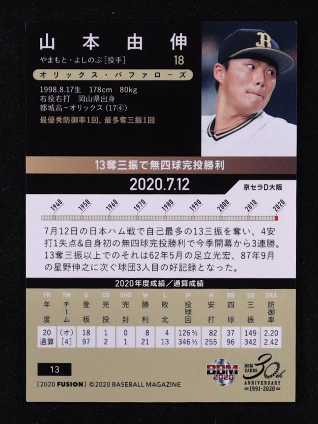Yoshinobu Yamamoto 2020 BBM Fusion #13 RC