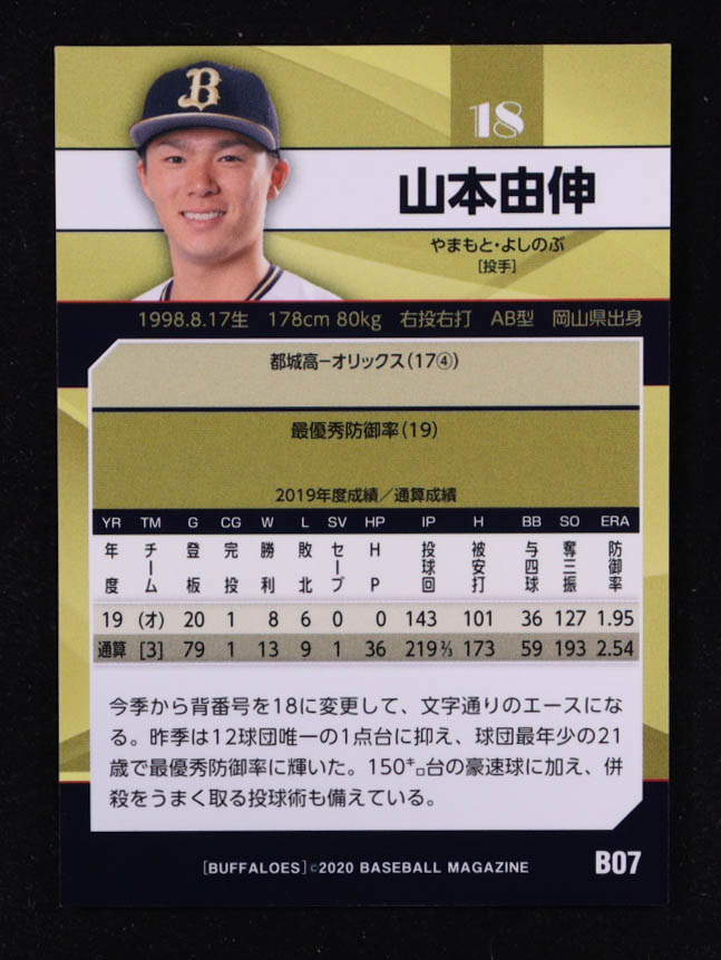Yoshinobu Yamamoto 2020 BBM 30th Anniversary #B07 RC