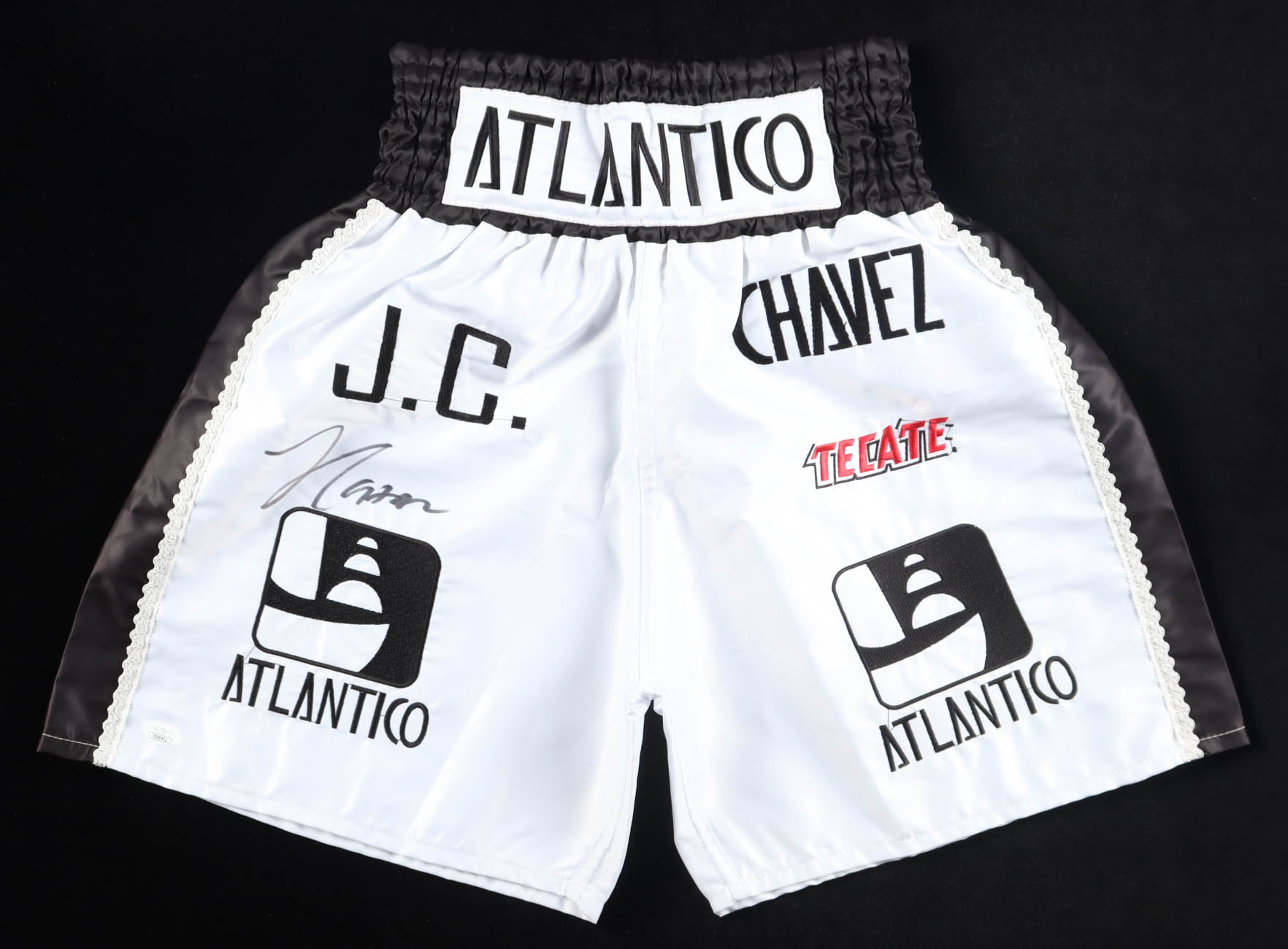 Custom boxing shorts, size L. Hand-signed by Julio Cesar Chavez.