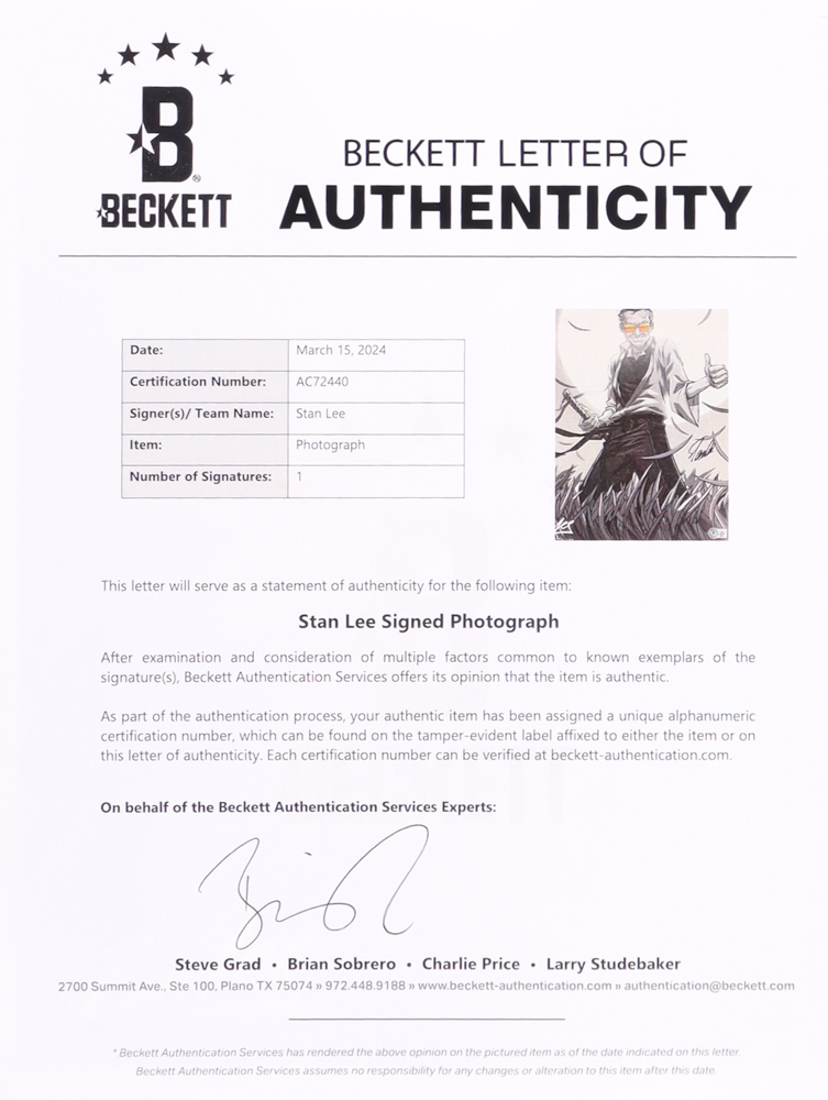 Photo measures 13" x 19" in size and has been hand-signed by Stan Lee (D. 2018).