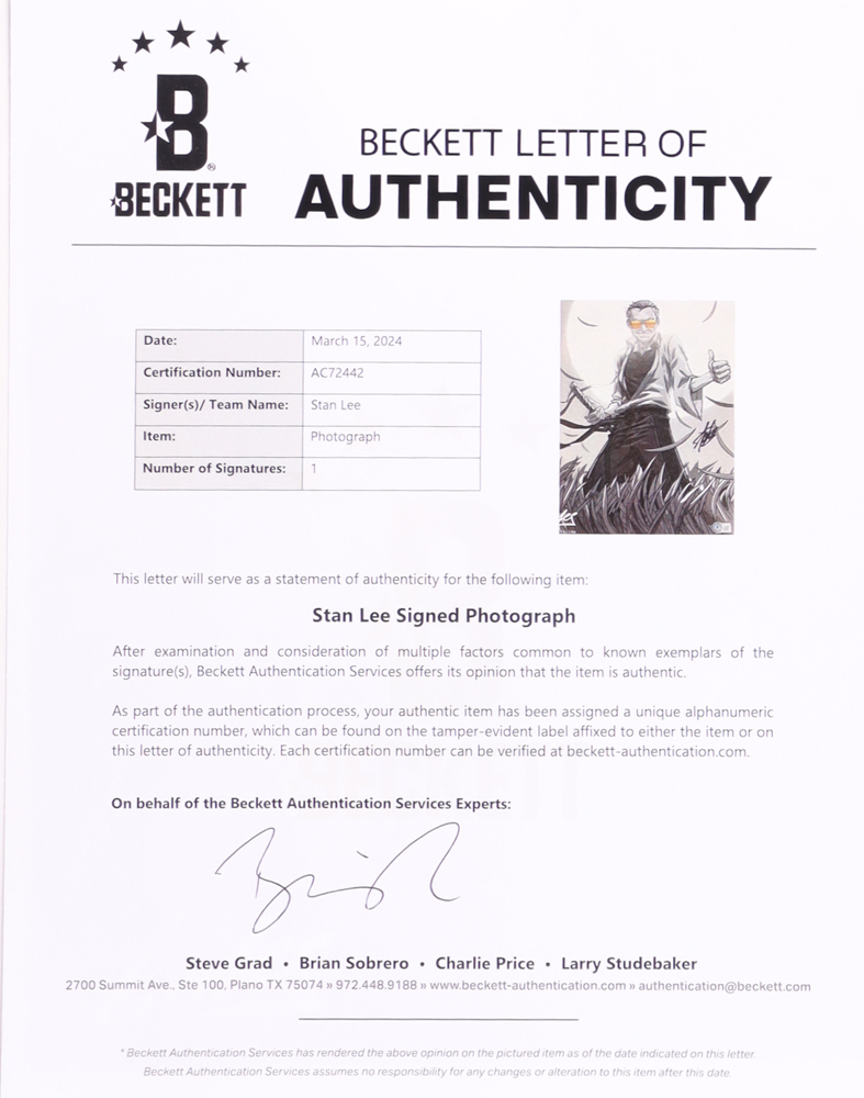 Photo measures 13" x 19" in size and has been hand-signed by Stan Lee (D. 2018).