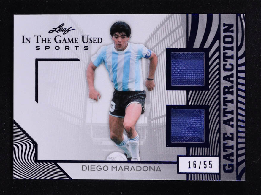 Diego Maradona 2025 Leaf ITG Used Sports Gate Attraction Dual Relic Blue Foil #GA8 #16/55