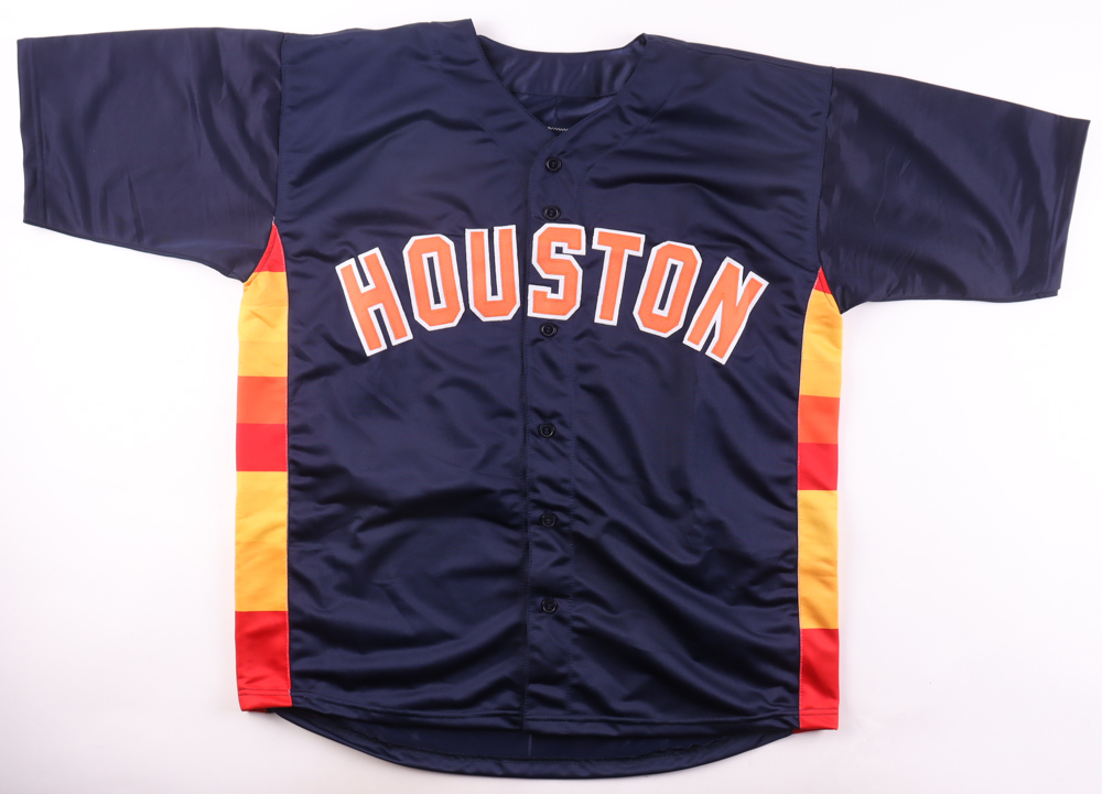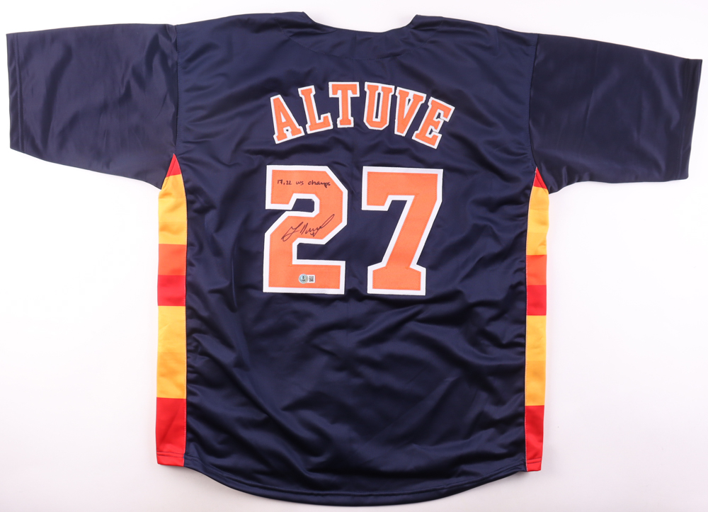 Custom jersey with everything sewn on, size XL. Hand-signed and inscribed by Jose Altuve.