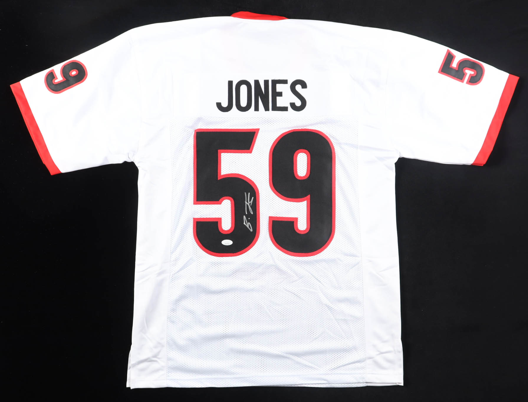 Custom jersey with everything sewn on, size XL. Hand-signed by Broderick Jones.