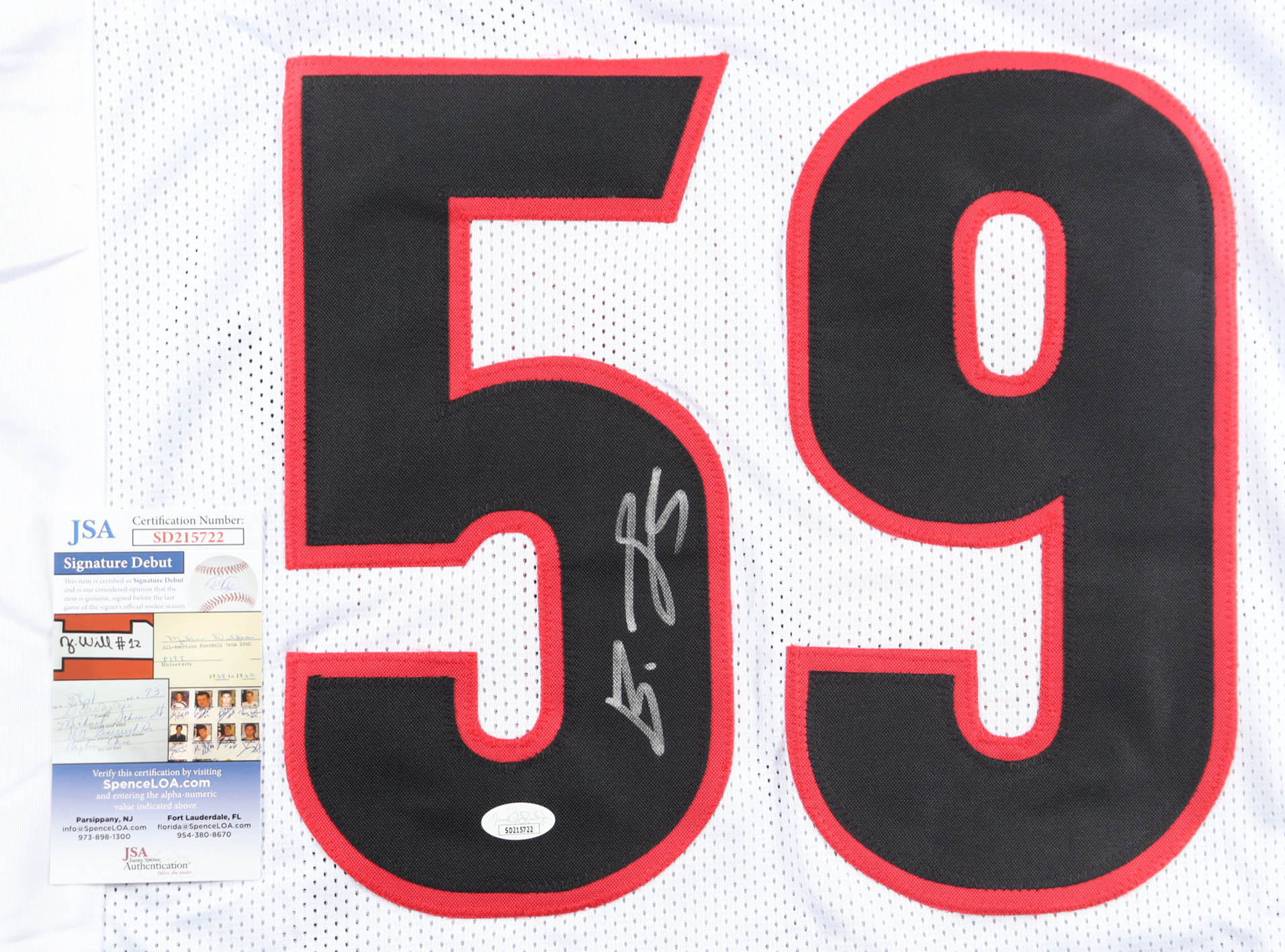 The autograph(s) includes an official James Spence Authentication (JSA) "Signature Debut" hologram and COA. "Signature Debut" is the autographed memorabilia equivalent to a rookie card. The JSA definition of a "Signature Debut" is as follows: "Any item that is autographed and received by JSA prior to the last game of the signer's official rookie season.