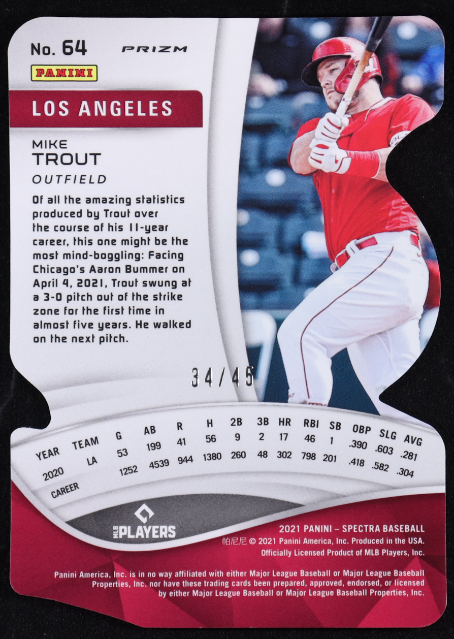 Mike Trout 2021 Panini Spectra Neon Blue Die Cut #64 #34/45