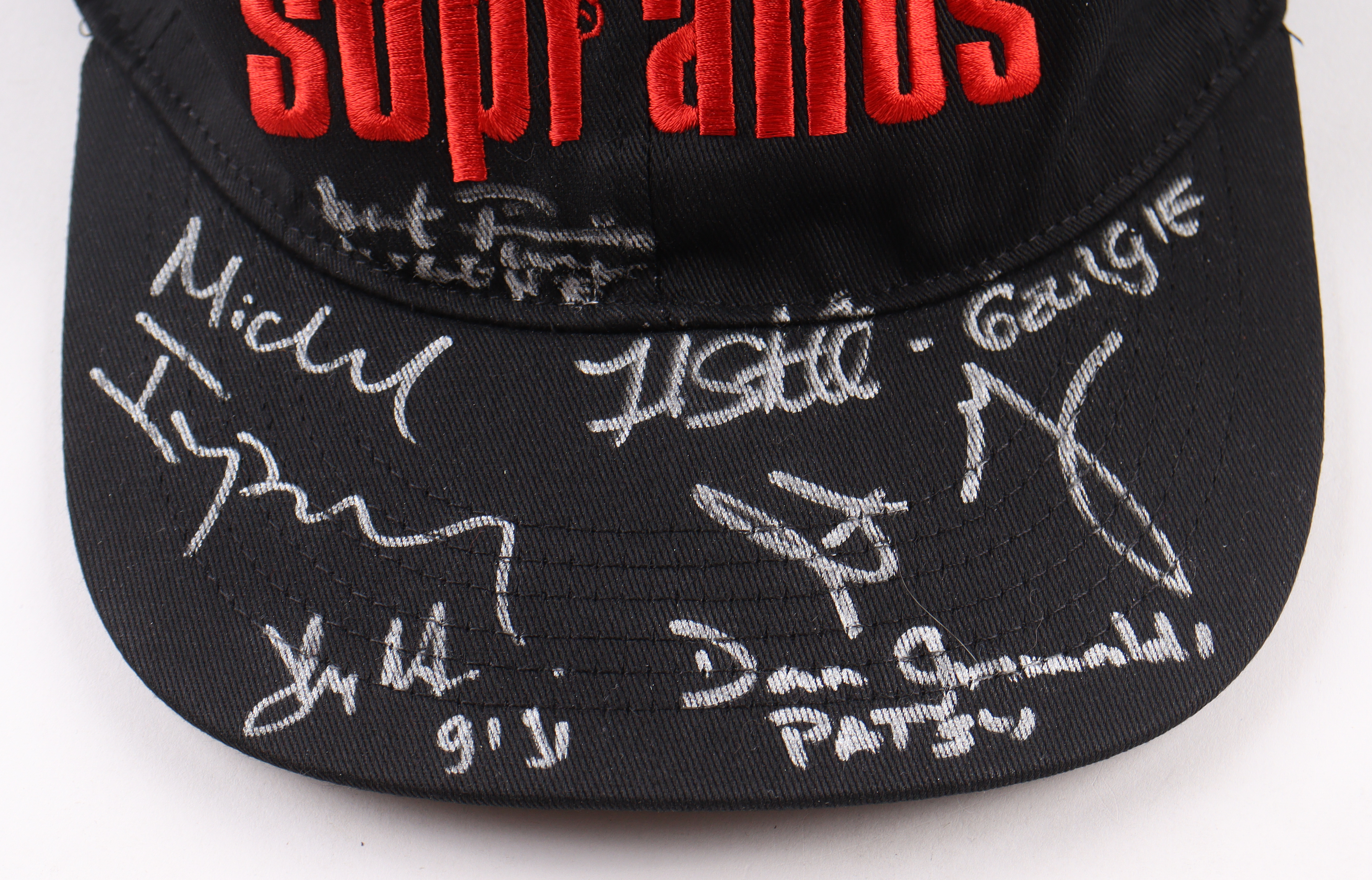 The Sopranos adjustable hat has been hand-signed and inscribed by (7) cast members including Frank Santorelli (Georgie), Dan Grimaldi (Patsy Parisi), Jason Cerbone (Jackie Aprile Jr.), John Fiore (Gigi Cestone), Robert Funaro (Eugene Pontecorvo), Michael Imperioli (Christopher Moltisanti) and Steve Schirripa (Bobby 'Bacala' Baccalieri). See photos for more details.
