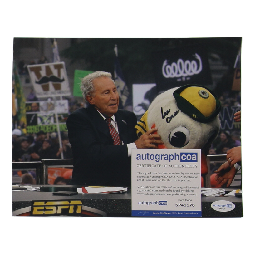 Photo measures 8" x 10" in size and has been hand-signed by Lee Corso. Please see photos for more details regarding the condition of the item.