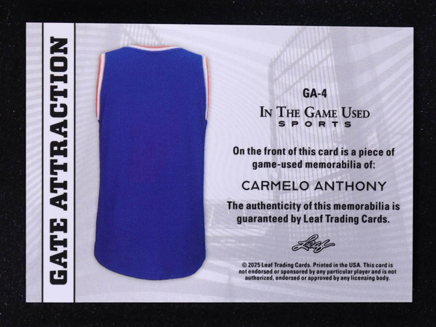 Carmelo Anthony 2025 Leaf ITG Used Sports Gate Attraction Dual Relic Blue Foil #GA4 #52/55