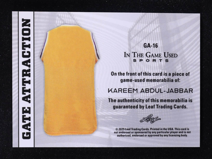 Kareem Abdul-Jabbar 2025 Leaf ITG Used Sports Gate Attraction Dual Relic Blue Foil #GA16 #04/25