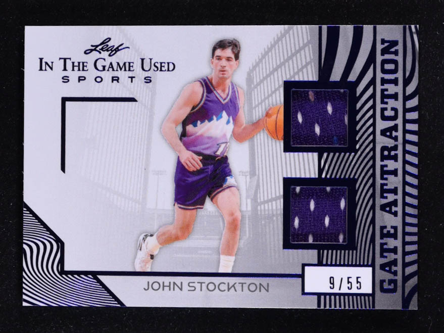John Stockton 2025 Leaf ITG Used Sports Gate Attraction Dual Relic Blue Foil #GA15 #09/55
