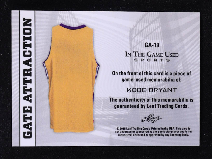 Kobe Bryant 2025 Leaf ITG Used Sports Gate Attraction Dual Relic Blue Foil #GA19 #05/55