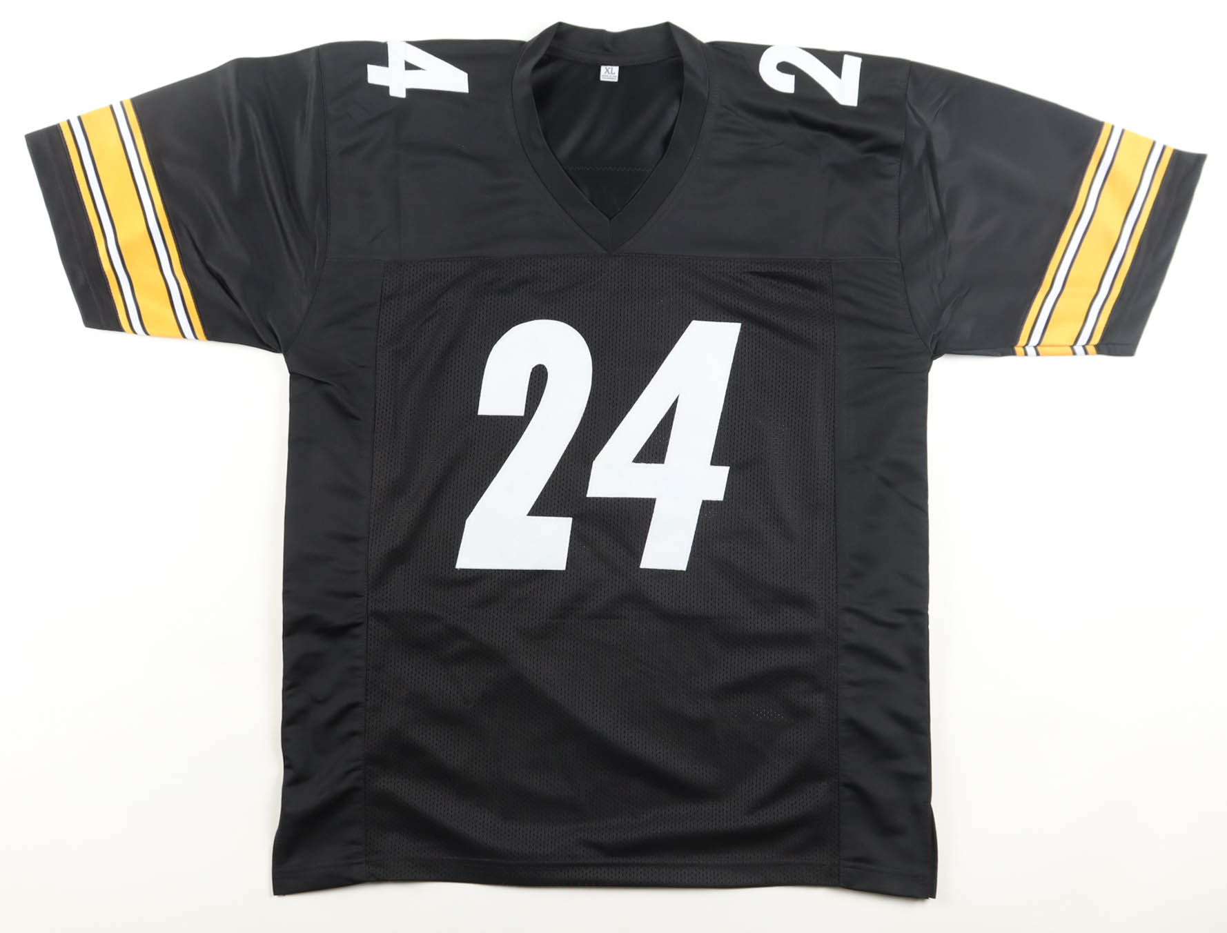 Custom jersey with everything sewn on, size XL. Hand-signed by Joey Porter Jr.. Please note, glue is visible through the reverse number.