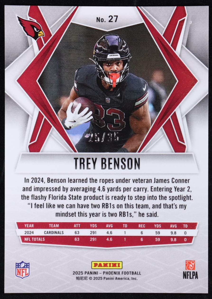 Trey Benson 2025 Panini Phoenix Yellow Mojo #27 #25/35